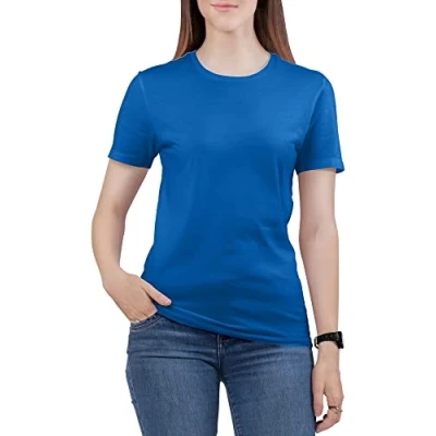 Love My Fashions Women's Round Neck Short Sleeves Plain Cotton T Shirt Royal Blue