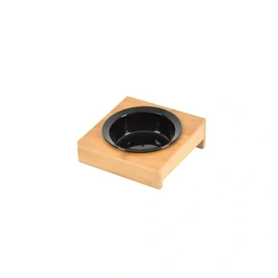 Includes: Black Ceramic Bowl + Natural Bamboo Stand - D12 cm 14 x 14 cm PREMIUM QUALITY - Bamboo is not only environmentally friendly, but it is also known to be strong. Non-slip: With a specific base, this bowl stays in place, preventing unwanted slipping while your pet is feeding or drinking. EASY CARE - This bowl can be easily cleaned with a sponge. The removable bowl is dishwasher safe. PERFECT FOR SMALL PORTIONS - With a 200ml capacity giving your pet just what they need at every meal.