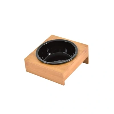 Includes: black ceramic bowl with natural bamboo stand, diameter 16 cm, 18 x 20 cm PREMIUM QUALITY - Bamboo is not only environmentally friendly, but it is also known to be strong. Non-slip: With a specific base, this bowl stays in place, preventing unwanted slipping while your pet is feeding or drinking. EASY CARE - This bowl can be easily cleaned with a sponge. The removable bowl is dishwasher safe. Generous capacity: The dosing capacity is 500ml.