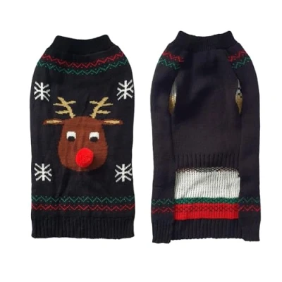 ️ Includes: Christmas Jumper with Pull On Acrylic One Size 45 cm Reindeer Design Black Red Green 🎄 Christmas Dog Jumper: One size fits for different breeds and sizes of dogs. Easy to put on - Convenient design to put on and take off quickly. 🎁 Festive design: Attractive Christmas patterns like snowflakes, reindeer or Santa patterns. COMFORTABLE & WARM - Soft and warm material to keep your dog comfortable during the holiday season.