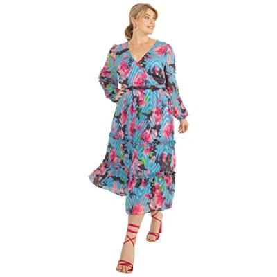Lovedrobe Plus Size Dresses for Womens Ladies Long Sleeve Maxi Dress Blue Print 20