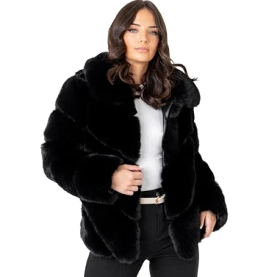 Faux Fur Coats for Women: Lovedrobe presents long sleeve faux fur jackets for women, available in classic black and in five UK/EU sizes: 8 UK (36 EU), 10 UK (38 EU), 12 UK (40 EU), 14 UK (42 EU), and 16 UK (44 EU). Ladies' Faux Fur Coats: Exude elegance with the Lovedrobe premium women's artificial fur jacket, featuring a hook and eye front fastening, collar, and side pockets. Diagonal panels of luxurious faux fur are interspersed with sections of soft faux leather, ensuring a lavish red carpet feel and the perfect cover-up for occasion wear. Women's Winter Jackets: This women's winter jacket ensures a flattering and comfortable fit with its classic silhouette and hook-and-eye front fastening. What's more, it has pockets to offer practicality in addition to keeping your hands warm. Fabric Composition: Faux fur: 100% Polyester. Faux leather: 100% Polyurethane. Lining: 100% Polyester. This women's winter jacket ensures a comfortable and cosy fit. Machine washable at 30°C. One Jacket, Different Occasions: From weekend outings to nights on the town, this versatile winter jacket is a standout choice for various occasions. Its edgy design makes it perfect for concerts and casual gatherings, ensuring comfort and style in every moment.