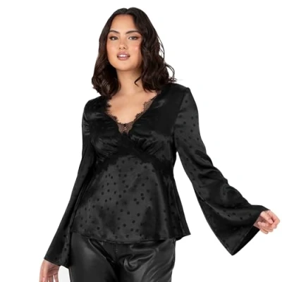 V-NECK TOPS FOR WOMEN: Lovedrobe presents stunning long sleeve, V-neck peplum tops. Available in Black and in 10 UK/EU sizes: 8 UK (36 EU), 10 UK (38 EU), 12 UK (40 EU), 14 UK (42 EU), 16 UK (44 EU), 18 UK (46 EU), 20 UK (48 EU), 22 UK (50 EU), 24 UK (52 EU), 26 UK (54 EU). PEPLUM TOPS: The women's blouse features a sophisticated V-neck and long bell sleeves. Crafted from a sleek satin fabric, the black spot print top is elevated by a delicate lace trim. SMART-CASUAL WOMEN'S TOPS: Feel comfortable in any situation in this smart-casual blouse from Lovedrobe. The flowy A-line silhouette and bell sleeves allow for free and easy movement. Whether sitting down or having a dance, you will always feel cosy and relaxed. FABRIC COMPOSITION: Crafted from 100% Polyester Satin with a delicate lace trim, the smart-casual polka dot top seamlessly blends style and comfort. ONE BLOUSE, DIFFERENT OCCASIONS: From office wear to post-work drinks, cocktails to formal evenings, this versatile black women's top is a standout choice for various occasions. The perfect blend of smart and casual, this exquisite V-neck blouse effortlessly transitions from workwear to a night out, ensuring elegance in every moment. Just pair with jeans for the ultimate smart-casual ensemble.