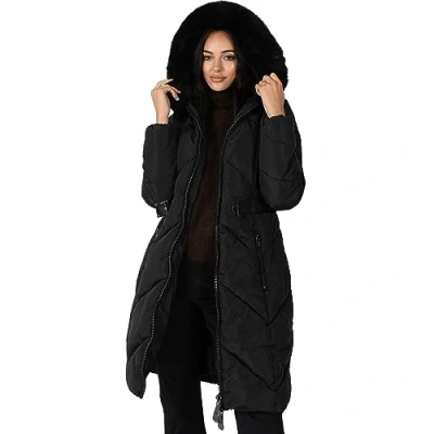 Lovedrobe Women's Winter Jacket Ladies Coat Quilted Padded Faux Fur Hood Belted Puffa Zip Front Pockets Puffer Outerwear, Black, 14