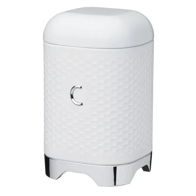 The Lovello Retro Ice White Textured Coffee Canister is part of the stylish Lovello Retro range that combines retro-inspired design with modern features. Unlike old-fashioned tins, it has a secure lid that keeps your coffee beans, powder or granules fresh and delicious for longer! With its curved contours, geometric textured finish and bold white colour, this coffee tin appears as a 1950s style with a modern twist. Lovello Retro Ice White Textured Coffee Canister will make your kitchen storage simple and practical as well as beautiful. Dimensions: 11 x 11 x 19 cm. 12 month guarantee. Team with other items in the Lovello Retro collection.
