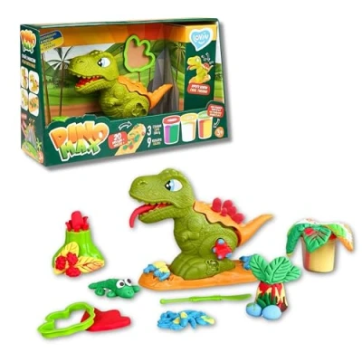 🦖 SCULPTING DOUGH DINOSAUR PLAYSET: Engage your child's senses and spark their creativity with this adorable modelling dough dinosaur activity set. With 9 beautifully vibrant colours, 20 dinosaur-themed moulds, and the daring Dino Max as their buddy, kids ages 3 and older can travel back in time as they create their own 3D prehistoric world. 🎨 FUN CHILDREN'S CRAFT KITS: The exciting dinosaur modelling dough art set gives children so many tools for creative exploration. Kids will love creating mini figures with the moulds and using the cutter to make dinosaur foot prints. They can use the plunger tools to squeeze dough to make colourful lava erupt from the volcano and have the dinosaur toy grow spines on its back and stick out a super long tongue. 🧠 EDUCATIONAL SENSORY PLAY: This interactive art toy is a great way to provide fun learning opportunities through sensory play. Squeezing and shaping the easily mouldable sculpting dough increases young kids' fine motor skills and making sculptures with Dino Max builds concentration and creativity. Sculpting together with friends and family encourages sharing and social skills. 🧽 SAFE AND EASY TO CLEAN MATERIALS: Arts and crafts don't have to be a pain to clean up - the safe and non-toxic modelling dough is specially formulated so it doesn't leave residue on hands and surfaces. This lets children be as creative as they want without the hassle of time-consuming cleaning sessions afterwards. 🎁 CREATIVE GIFTS FOR GIRLS AND BOYS: If you're looking for creative gift ideas for children, this dino playset is a great option for young boys and girls that's got everything needed for hours of modelling fun. Includes 3 tubs of tricolour modelling dough, 1 dinosaur figure with moulds, 1 support stand with moulds, 1 sculpting tool, 1 volcano with plunger, 1 foot print shaped cutter.