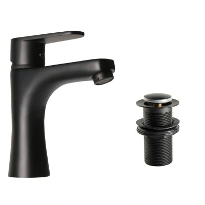 Featuring a sleek modern design, the Matt Black Low Mixer Basin Tap and non slotted waste in a striking matt black finish is a stylish and high-quality choice for any bathroom or en-suite wash basin. At 170mm tall, this single-lever mixer tap exudes contemporary elegance, perfect for those looking to introduce a modern touch. The black finish offers a dramatic contrast against white basins, enhancing your bathroom's d©cor with a sleek edge. The graceful waterfall flow adds an element of sophistication, elevating the aesthetic of any wash basin.This tap has an internal ceramic cartridge that ensures smooth operation for an extended period of time, while the single lever mechanism makes it easy to control the temperature and flow with minimal effort. For added convenience, this unit includes a fixing kit and two 50cm braided tap connectors. It has a height of 170mm and a spout distance of 140mm from the back.Features & Benefits: Low Matt Black Basin Mixer Tap with Black Non Slotted Waste, A high-quality, half-turn mono-block mixer tap kit, Striking matt black finish to give contrast with white basins for a sleek edge in bathroom d©cor, Compatible with medium to medium/high-pressure systems (minimum 0.5 bar pressure)Kit Contents, 1 x Matt Black Single Lever Low Mixer Tap, 1 x Black Non Slotted Waste. Low Matt Black Basin Mixer Tap with Black Non Slotted Waste Clickbasin