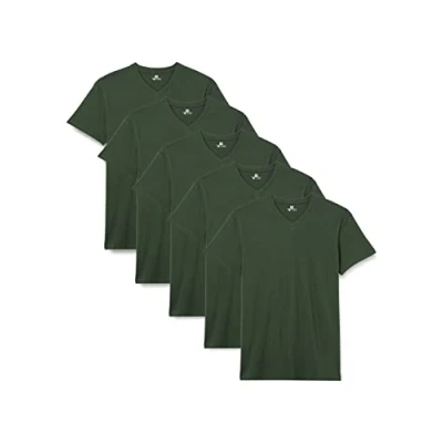 Lower East Basic Men's T Shirt with V Neck, Pack of 5, Dark Green, S