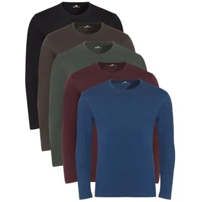 Lower East Le133 Men's Long Sleeve T Shirt, Black, Dark Green, Burgundy, Denim Blue, Taupe, S (Pack of 5)