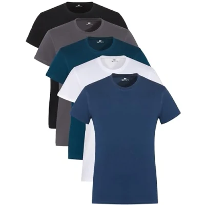 Lower East Men's Le105 T Shirt, Black, Petrol, Denim Blue, White, Anthracite, XXL (Pack of 5)