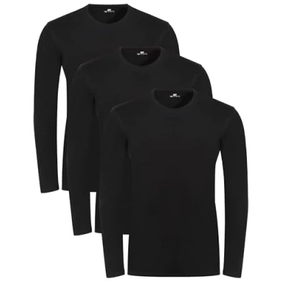 Lower East Men's Le133 Long Sleeve t Shirt, Black, L (Pack of 3)