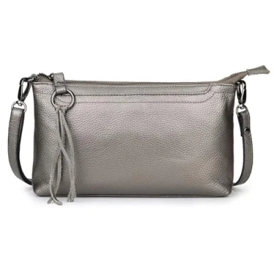 Lowille Genuine Leather Crossbody Bag For Women Head Layer Small Tassel Shoulder Zipper Clutch Wallet (Silver)