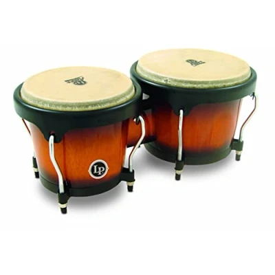 Sizes: 6 3/4" and 8" Body: Siam Oak, Color: Vintage Sunburst Head: Natural rawhide Hoops: Aspire EZ Curve Tuning lugs: 9/32", chrome Bongo Bottom: Steel, Cuban Style Hardware Finish: Black powder coated
