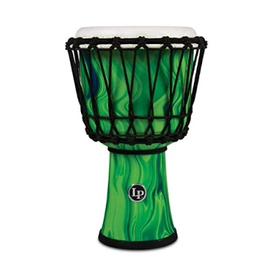 7", height: 16" Body: Lightweight exclusive LP HD material, tuning system: rope tension Skin: Syntethik Perfect-Pitch, Weather resistant, Available sizes: 7". Available colours: Blue Marble/Green Marble/Orange Marble