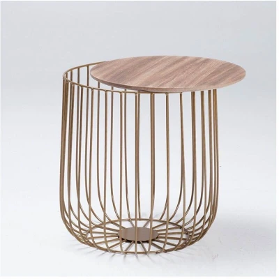 LPD Furniture Enzo Black or Gold Cage Coffee/Lamp Table Removable Marble Oak Finished Top(Small Oak)