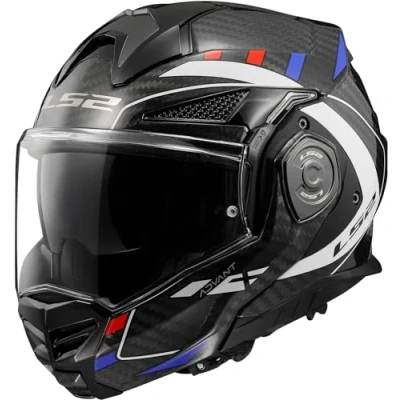 CARBON ECE 22.06 Certified Motorbike Helmet. 180 Degree Rotating Chin Bar. SAFETY: Micrometric Metal Buckle. Emergency Release System. Reinforced Chin Strap. Magnetic Smart Pull Tab. Multi-Density EPS VENTILATION: Channelled EPS. Metal-cover chin vent. Metal-cover top vent. Open and close exhaust ports VISOR: Twin Visor System. Quick Release System. UV and Scratch Resistant Visor. Ready for Max Vision Pinlock. Hidden Sun Visor Sliding Button LINER: X-Static Silver Liner Fabric. Extra comfort Liner. Removable and Washable. Breathable. Hypoallergenic. Laser - Cut Foam. Chin Curtain. (Ready for LS2 New Bluetooth)