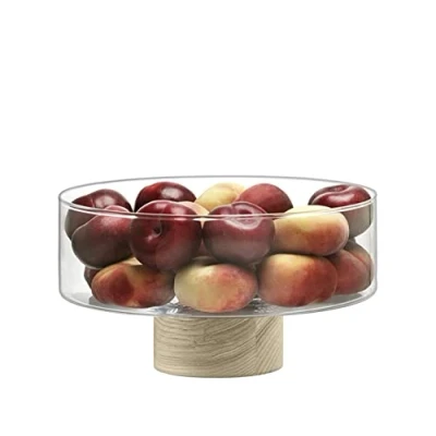 LSA Lotta Pedestal Bowl Clear & Ash Base Ø25cm 1 Unit Mouthblown Handmade Glass Hand Planed Wood LW30