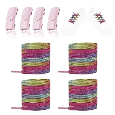 LT Easiyl 2 Pairs No Tie Shoe Laces Elastic Tieless Shoelace Rainbow Colored Shoelaces & Pink Magnetic Buckle fits Sneakers Canvas Casual Shoes Boots
