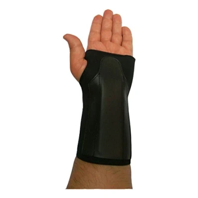 The synthetic rubber Wrap Wrist Brace provides compression and immobilization The brace has removable stays and Hook and Loop fastening for easy on and off application The wrist support is designed to offer additional protection for light injuries including a sprained wrist or repetitive strain injury and enable the wearer to carry on with their daily tasks. Ideal for healing Carpal Tunnel Syndrome, Wrist Fractures, Sprains, Ligament , Tendon Strains, Post cast healing, Sports Injuries prevention and healing, Rheumatoid Arthritis, Fully Adjustable Metal: Adjust it according to your hand Simply measure around your wrist where it flexes, just below the base of the thumb. Use a tape measure, and the measurement should help you find the perfect size using the guide above mentioned in the picture. Small/Medium: 15-18cm Large/X-Large: 18-21cm