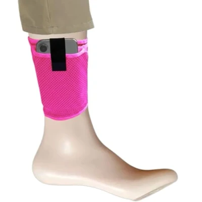 LTG PRO® Concealed Ankle Leg Mesh Wallet Travel Pouch Passport Mobile Purse Bag (S M, Pink)