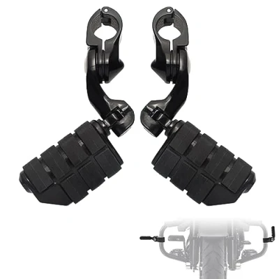 [For Lion Paw Style Hwy.pegs] Universal Motorcycle Gloss Black 1.25" Highway Footpegs/32MM Hwy.pegs, Short Angled Adjustable Highway Pegs w/Mounts for Harley Touring Softail Dyna Sportster CVO Electra Glide Road Glide Road King Street Glide Trike Honda Kawasaki Suzuki Yamaha Indian Victory all models with 1-1/4" (32mm)Engine Guard/Highway bars/Tubin;Does not fit with Chopped Engine Guards; [Perfect addition to enhance your riding experience] Stretch out for added comfort, This Adjustable Highway Peg Mounting Kit can be set for shorter riders, and it can be reversed to reach far forward for those with long legs; [Feet can escape engine heat!] Improved Airflow and Increased Distance, Allow you to get your feet away from the hot engine; [Perfect fit multiple foot positions] Angled design allows the arm to reach back and around to clear fairing lowers, Arm can be raised and lowered for a custom fit; [Enhanced Grip]The foot pegs feature a textured surface that ensures a firm grip, even in wet or slippery conditions. This helps improve control and stability while riding; [High-Quality Construction]Crafted from durable and corrosion-resistant aluminum materials, these foot pegs are built to last. They are designed to withstand the rigors of daily riding and provide long-lasting performance; [Easy installation] Mounting clamp firmly grips the engine guard, and secures the peg at the desired angle; [In the box] · Left and right side Highway Footpegs,Set of Allen Wrench;