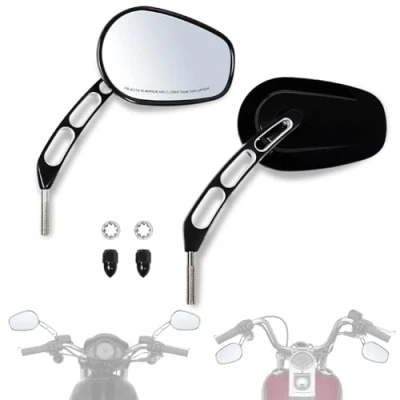 ➤Prodcut : Aftermarket Brand New Rear View Side Mirrors,Universal fits for Most 8mm Threaded for Harley Davidson Motorcycles ➤Features: 360-Degrees cycling rear view mirror rotatable,The filed of view is much better,you can see more behind you ➤Material : Black Aluminum Stem, High-impact Zinc Alloy Shell Shell And Glass Mirror ➤In the box : Left and Right Mirrors ➤Installation:Super Easy Bolt-on Application. Note:The mirrors' thread are M8,not the 5/16 24 UNF,will not work with turn signal light on the mirror.