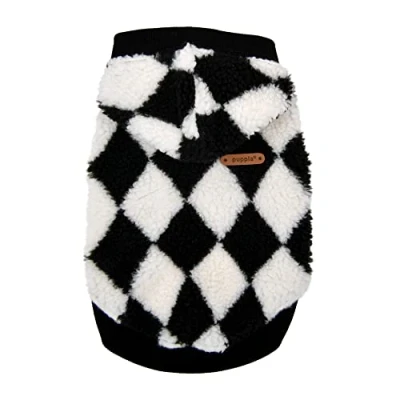 Sleeveless winter hoodie Argyle pattern and solid schemed PUPPIA SMART TAG pendant(QR Code only) is included Size: Medium: 11.8" Neck, 14.6" Chest, 9.8" Product Length