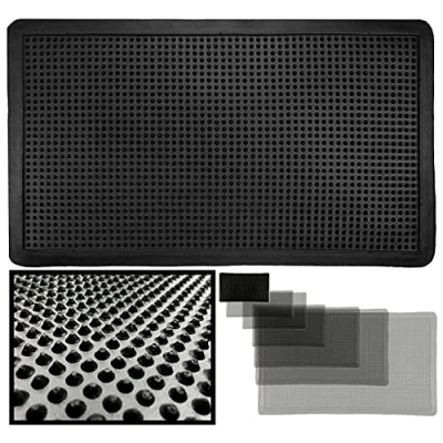 This entrance doormat, with its sleek design and cleaning spikes, not only beautifies your home but keeps the interior spotless. Heavy duty rubber ensures durability. Durability and functionality combine in our outdoor doormat. Perfect for any weather, its robust rubber and non-slip base ensure safety and stability at your doorway. Transform your entryway with our black rubber doormat. Its unique design not only complements the carpet entrance home, but also adds an original touch to your space. Ideal for the kitchen or any entryway, this rug is not only practical but also an essential element in your home decor. Easy to clean and maintain, it is perfect for daily use. Discover the combination of aesthetics and utility with our original doormats. Designed with function and fashion in mind, they are the perfect addition to any modern home.