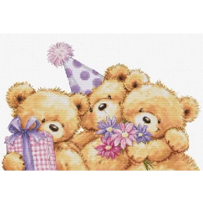 Luca S Cross Stitch Kit Three Party Bears, B1411, Counted for Adults, Needlecraft and Embroidery