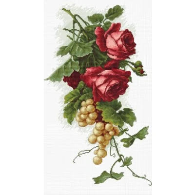 Luca S Roses and Grapes Counted Cross Stitch Kit, Pack of 1, Red