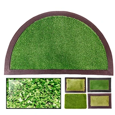 LucaHome Door Mat Entrance House 40 x 70 cm Semi Moon Rubber and Artificial Grass Non Slip Base, Doormat, Easy Cleaning, Absorbent Doormat for Outdoor Indoor