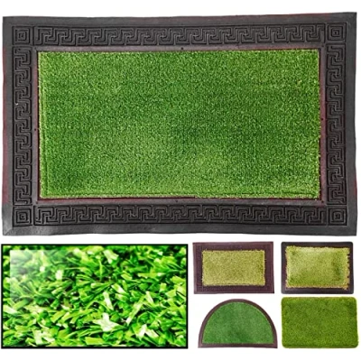 ✅ QUALITY AND EASY CLEANING: Door mat made of artificial grass rubber with premium finish, traps water, mud, snow or any kind of dirt, it is very easy to clean, just clean it with the vacuum cleaner and it will look like new. ✅ ANTI-SLIP - This mat made of rubber-pvc is made of non-slip base to clean your shoes safely and prevent slipping. ✅ EXTERIOR & INTERIOR: This rubber mat and artificial grass is designed and manufactured for indoor and outdoor use, doormat for terrace, hallway, garden, entrance home. ✅ QUALITY MATERIAL: This door mat for entrance to the house is made of rubber and artificial turf and is made with quality materials for a long lasting time avoiding wear in the short term ✅ PERFECT SIZE: Choose the size and shape that best suits your needs, it is available in 37x52cm, 40x63cm, 50x75cm and 60x80cm in rectangular shape and 40x70 in semiluna shape