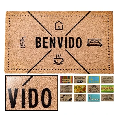 LucaHome Natural Coconut Doormat 40 x 70 cm, Non Slip, Portugues Benvido Mod 3, Absorbent Doormat, Home Entrance, Ideal for Outdoor or Indoor