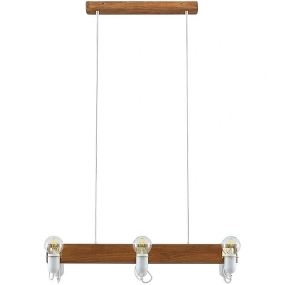 ManoManoGeneral description Lucande Becky is a stylish hanging light designed for living rooms and dining rooms. This six-light pendant luminaire features an antique wooden beam with white metal lamp holders, creating a warm and inviting atmosphere. The upward shining lamps enhance the overall lighting experience, making it perfect for mounting above tables or counters. Technical specifications Type: Pendant light Number of bulbs: 6 Material: Wood and metal Finish: Antique wood with white lamp holders Installation Designed for mounting above tables or counters. Usage Easily dimmable with an additional dimmer switch (not included). Ideal for creating a cozy atmosphere in living spaces. Other information