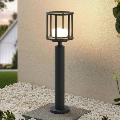 Lights.coSlim path light Benerike in a striking design made of dark grey aluminium Benerike provides reliable lighting for outdoor areas and perfectly showcases even a path at night. Its body is also made of aluminium and has a dark grey surface. At its top sits a cylindrical lampshade, which represents a kind of cage and can be equipped with appropriate bulbs. The Benerike path light can therefore be equipped with a bulb of your choice, allowing you to adjust the light intensity and light colour to your personal needs. Combining Benerike with other lights from the series creates a coherent overall impression.