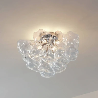 Lights.coTransparent Diborah ceiling light with appealing lighting effect Consisting of 16 irregularly shaped glass spheres, which are transparent in design, the ceiling lamp creates a fascinating light pattern. The four G9 bulbs, which must be used, illuminate the spheres and direct the light in all directions. The organic look and high-quality workmanship make Diborah a real eye-catcher and allow it to find its place in both modern bedrooms and living rooms.