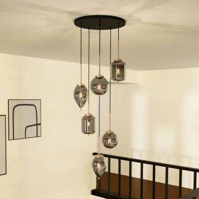 The Elani pendant light combines modern design with high-quality materials such as metal and glass. With its black and gold colour scheme, it adds stylish accents and blends harmoniously into modern living and dining rooms. The six light sources provide uniform illumination and create a pleasant atmosphere that is both functional and aesthetically pleasing.