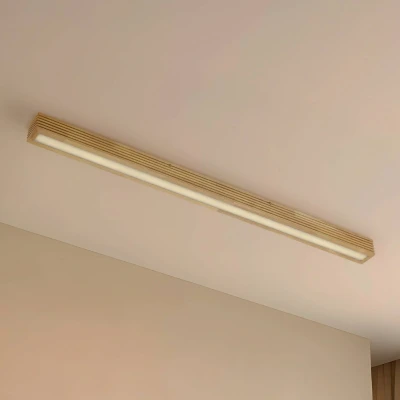 Lights.coEmara dimmable LED ceiling light made of wood The rectangular Emara LED ceiling light combines stylish design with functional lighting. Made of oak, this light impresses with its natural, light wood look and attention to detail, lending every room a warm and inviting atmosphere. The integrated LED light source provides energy-saving light with a warm white light colour for a cosy ambience. A particularly noteworthy feature is the dimmability, which can be controlled via an external wall switch. This allows for flexible adjustment of the light intensity, ideal for creating different moods in a room. Designed by Markus Binz, the ceiling lamp combines aesthetic sophistication with practical lighting solutions that can both inspire and calm.