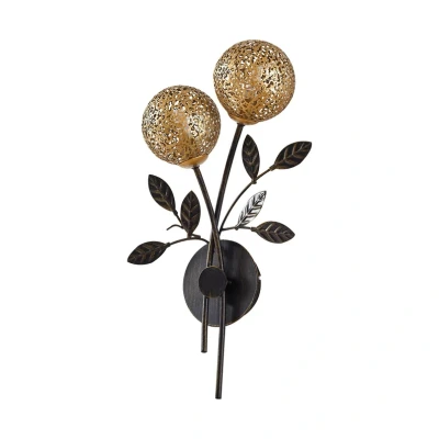 Lights.coEvory wall light with oriental lampshades Flowers are the ideal decoration to make a home really cosy. With the Evory wall light, you can now bring flowers into your home that never wilt. This wall light consists of two intersecting metal rods with beautifully shaped leaves attached to decorate them. Each rod is fitted with a lampshade. These spherical lampshades are decorated with a filigree pattern, giving them a slightly oriental look. The light shines through the cut-outs and creates romantic moments of light with pretty shades. The light cuts a particularly fine figure in a living room.