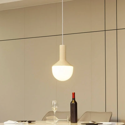 Lights.coDecorative Florine pendant light with ceramic element The 1-bulb Florine pendant light is visually shaped like a large bulb. The upper part is made of grooved ceramic in an attractive beige colour. The lower part is made of opal glass, which ensures that the light is emitted glare-free and over a large area. This lighting element adorns any room and can also create a harmonious look when used in groups.
