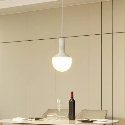 Lights.coFlorine single-bulb pendant light made of ceramic and glass The Florine single-bulb pendant light is visually shaped like a large bulb. The upper part is made of grooved ceramic in attractive grey. The lower part is made of opal glass, which ensures that the light is emitted glare-free and over a large area. This lighting element adorns any room and can also create a harmonious look when used in groups.