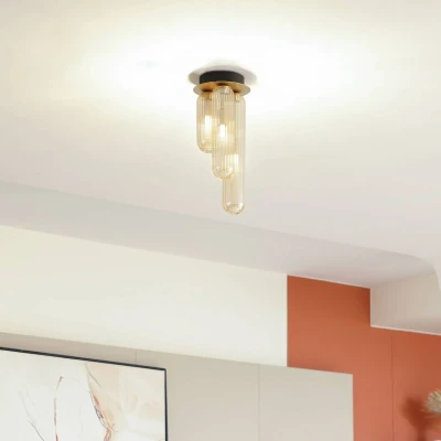 Freylin 3-bulb ceiling light with glass lampshades This beautifully designed ceiling light is an excellent choice for your four walls. The light can be dimmed to suit your mood using an external dimmer (not included). In Lucande brand quality, the ceiling lamp impresses with its well thought-out design and a great feeling of cosiness. It has a beautiful style and blends beautifully into any room. Freylin was designed for use with bulbs with a G9 base. The amber and black coloured ceiling lamp is a must-have to add a great atmosphere to your interior. Any room will be fantastically illuminated thanks to the pleasant light from the ceiling light. A cosy atmosphere is therefore guaranteed.