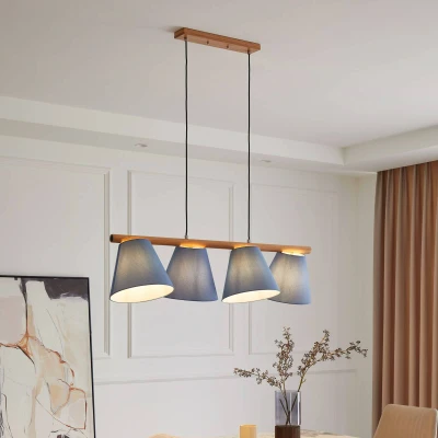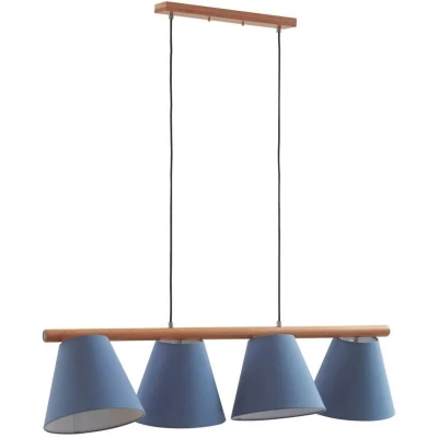 Lights.co4-bulb, blue Jinda pendant light with fabric shades and oak wood The beautifully designed Jinda pendant light is sure to cut a fine figure in your home. The light allows you to adjust the brightness to your liking using an external dimmer. The Nordic-style light, which is based on a concept by Ingo Thiele, impresses with brand quality from Lucande and therefore stands for a convincing living experience and outstanding design. The blue and oak-coloured hanging light has E27 sockets. It is ideal for your dining room or living room and fulfils a decorative function even when switched off.