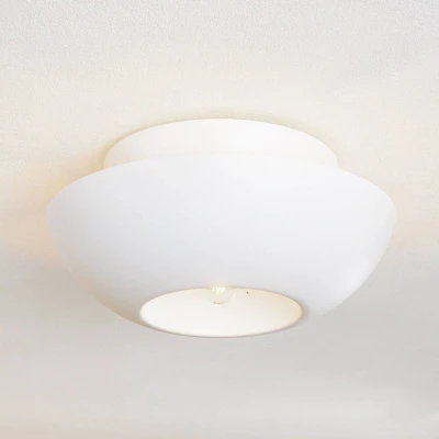 Modern Kellina ceiling light with an attractive double shade Kellina is a beautiful ceiling light that can be used to great effect in a living room, bedroom or dining room. It can also be used in the commercial sector, for example in hotels or restaurants. Its well-formed double shade looks very stylish on the ceiling and is not overpowering thanks to the simple white surface finish. The light fits perfectly into modern interiors, but can also be combined with different types of furniture.