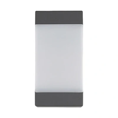Lights.coKiran aluminium outdoor wall light with triangular cut-out at the side The Kiran aluminium outdoor wall light has a very straightforward design, with the entire light taking the shape of a cuboid. The frame is made of aluminium and the built-in diffuser is made of polycarbonate. The side insert is particularly noteworthy, as the two parts complement each other in a triangular or - if you're being precise - trapezoidal shape. - RAL 840-M
