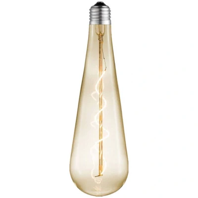 Lights.coElongated LED bulb with E27 base and amber-coloured glass This bulb impresses with its unique design. The glass is amber-coloured and has an unusually long shape. The LED bulb is dimmable as required and is ideal for luminaires with a clear view of the light source.