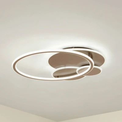 The Lucande Circulo LED ceiling light combines modern design with versatile functionality. Made from high-quality metal in an elegant coffee brown colour, it blends seamlessly into various living areas such as the living room, dining room or hallway. The integrated LED light source provides uniform and energy-efficient lighting that can be individually adjusted using the CCT function. From warm white light for a cosy atmosphere to cool white light for a clear and productive environment, the light offers flexible lighting design for every need. Thanks to the integrated dimmability, which can be controlled via the included dimmer, the brightness can be continuously adjusted. With an excellent colour rendering of 90 Ra, the luminaire ensures a natural and lively light quality. The Lucande LED ceiling light Circulo is the perfect choice for anyone who values stylish looks and adaptable lighting.