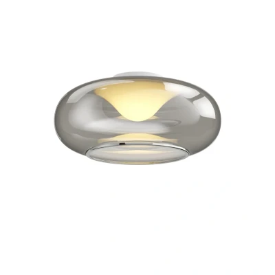Lights.coSmoke grey LED ceiling light Mijo with a slightly shimmering surface and round shape Mijo is an aesthetic LED ceiling light with a bulbous lampshade made of glass. The surface of this lampshade is a very stylish smoky grey, which has a slightly shimmering surface with a glossy effect, creating subtle reflections. Of course, the light pattern is also affected by the colour of the lampshade, creating cosy lighting conditions with that special something. The LEDs behind the white plastic element have a warm white light colour and also have good energy efficiency, so that the ceiling lamp also meets modern technical requirements.