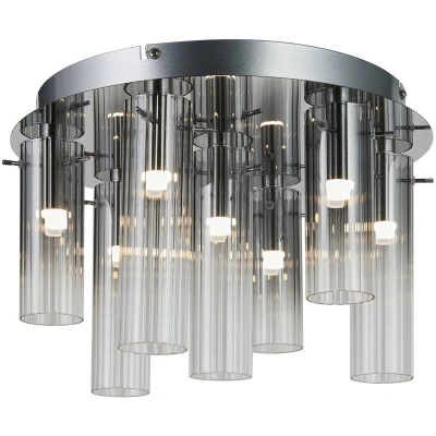 ManoManoGeneral description This LED ceiling light 'Korvitha' features a stylish industrial design that enhances the modern vibe of your living room, dining room, or office. It is not only an excellent source of light but also serves as a decorative element, adding charm to your home. The lamp is designed to accommodate warm LED bulbs, creating a cozy and inviting atmosphere. Technical specifications Type: LED ceiling light Number of bulbs: 7 Material: Glass Color: Grey and silver Dimmable: Yes, with three brightness levels (10%, 50%, and 100%) Light color: Warm white Installation Ready to use: Lightbulb included for easy assembly Usage Ideal for living rooms, dining rooms, bedrooms, kitchens, hallways, and offices Perfect for creating a cozy and relaxing atmosphere Other information