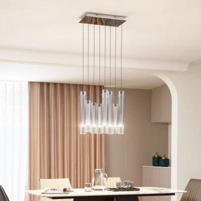 General description This LED Ceiling Light 'Korvitha' features a stylish industrial design, perfect for enhancing the modern vibe of your living room, dining room, or office. With its eight glass lampshades, this lamp combines functional lighting with an attractive aesthetic, creating a cozy atmosphere in any space. The warm white light color adds a pleasant ambience, making it a great addition to your home decor. Technical specifications Type: LED Ceiling Light Number of bulbs: 8 Color: Grey and Silver Brightness levels: 10%, 50%, and 100% Installation Ready to use - Lightbulb included for easy assembly. Usage Dimmable feature allows you to set the perfect mood for relaxation. Ideal for living rooms, dining rooms, bedrooms, kitchens, hallways, and offices. Other information